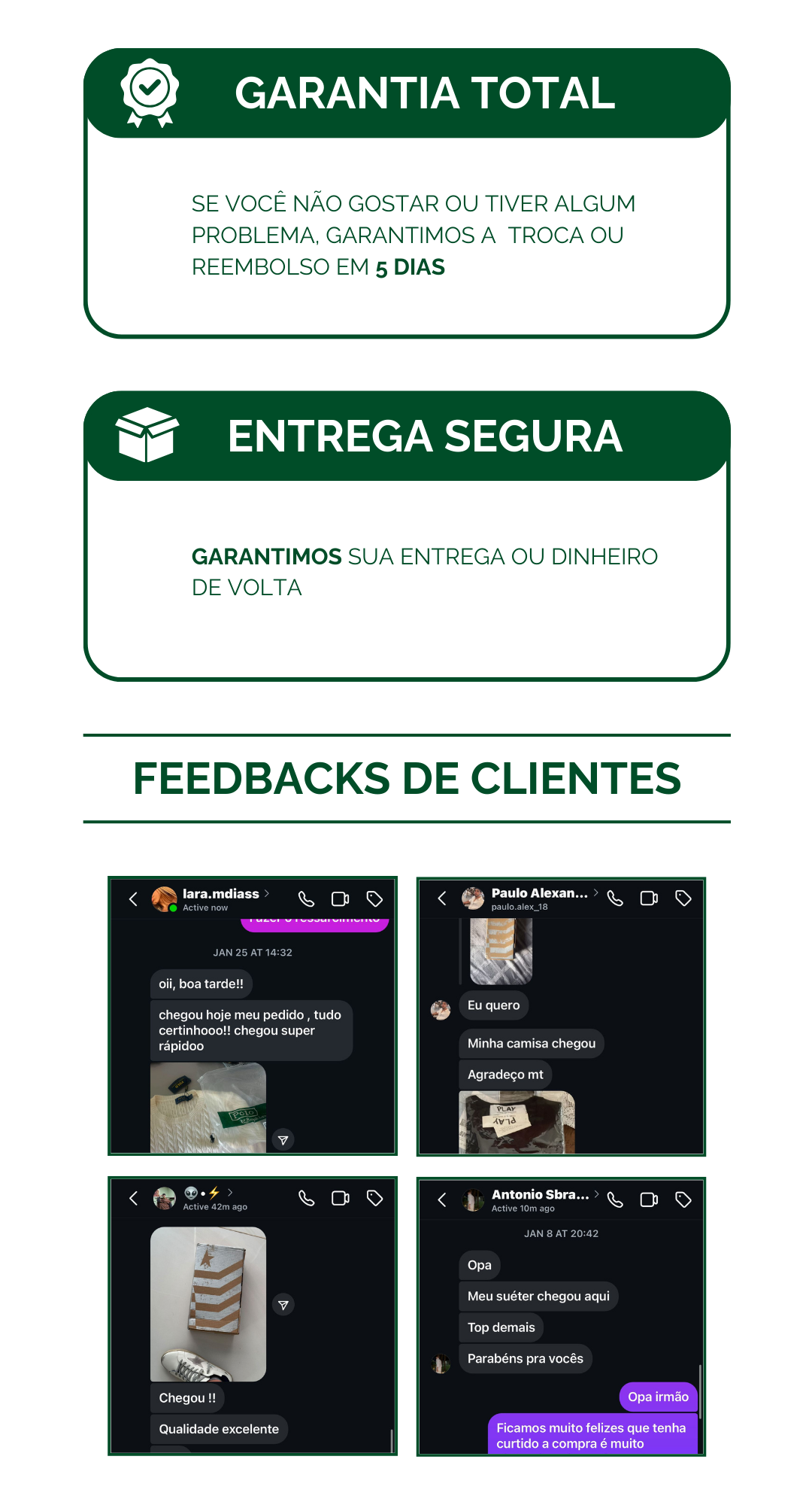 Oferecemos garantia de 30 dias para todos os nossos produtos.